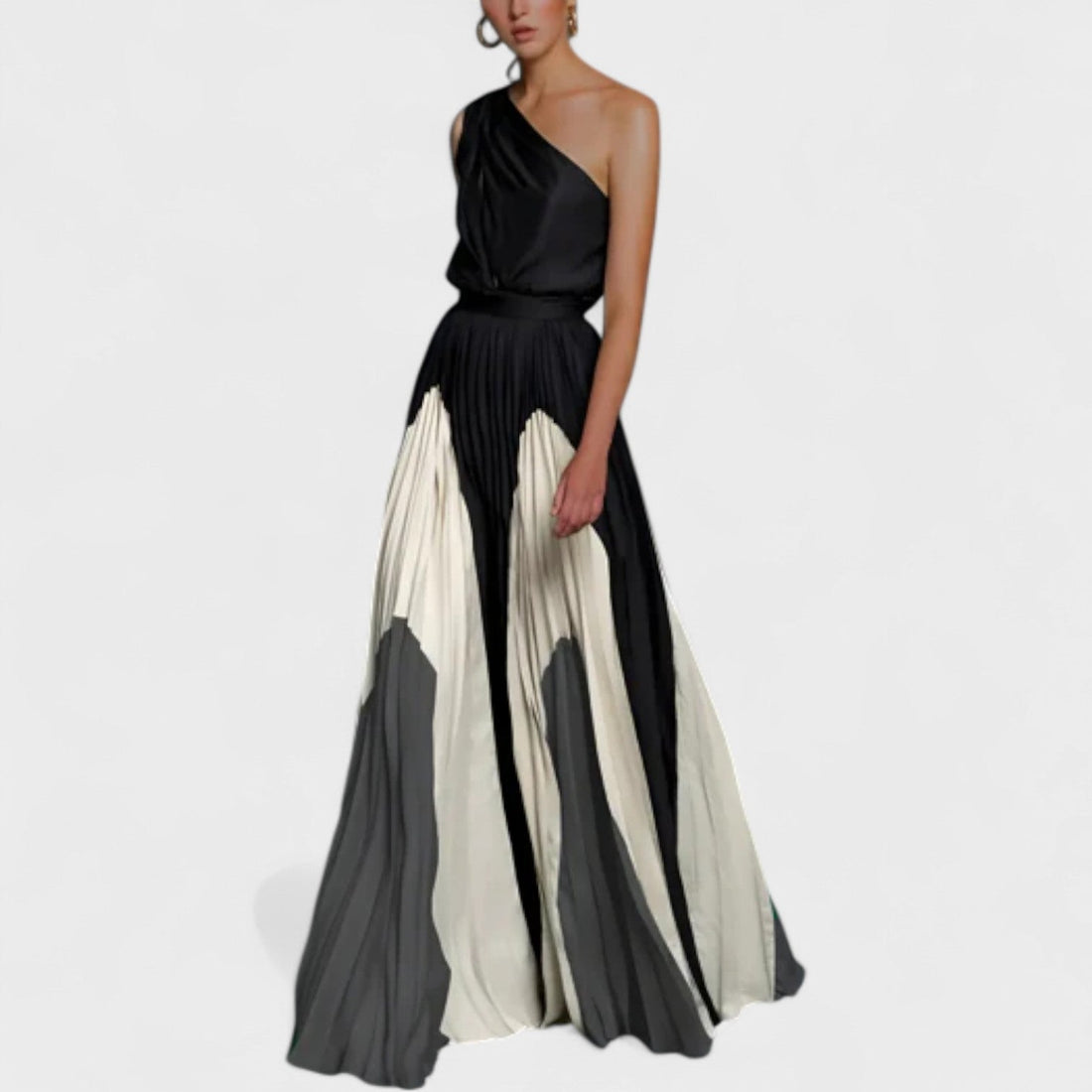 Elegância Artística: Um Vestido que Fala por Si Este vestido longo de um ombro só...