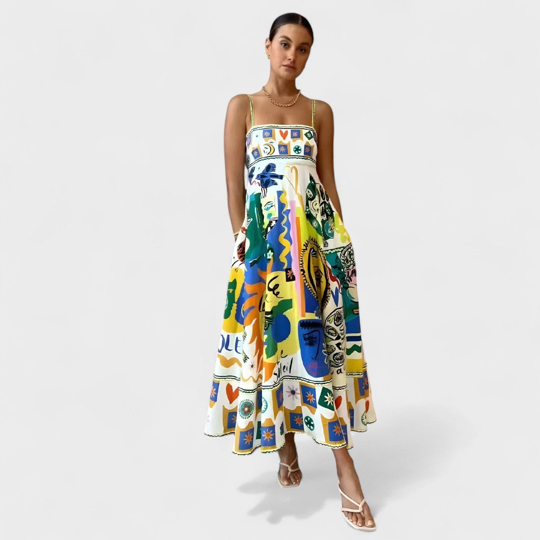 Arte em Movimento: Vista-se com Personalidade Este vestido longo é uma verdadeira galeria de arte...