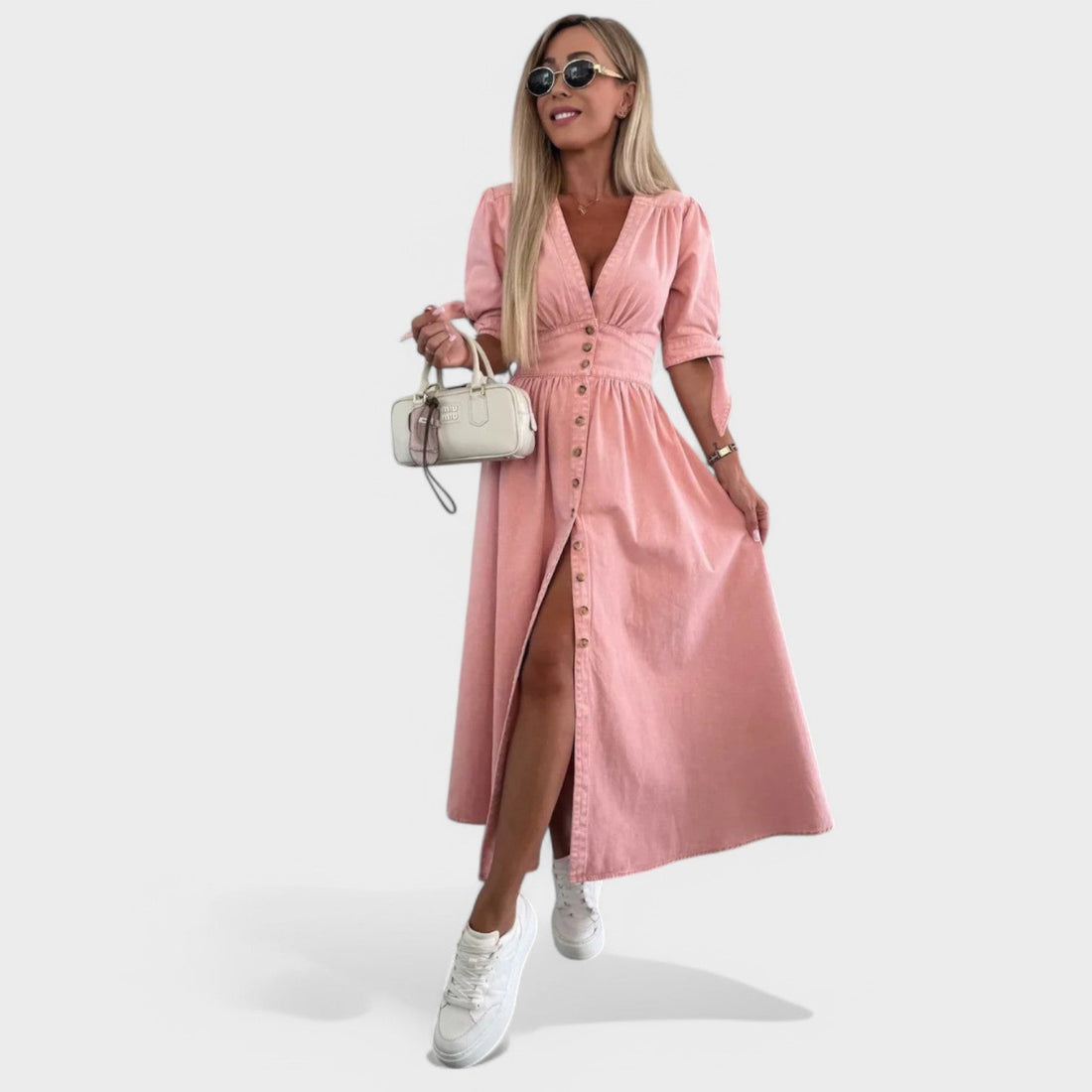 Ana - Vestido Midi Elegante com Cintura Laçada
