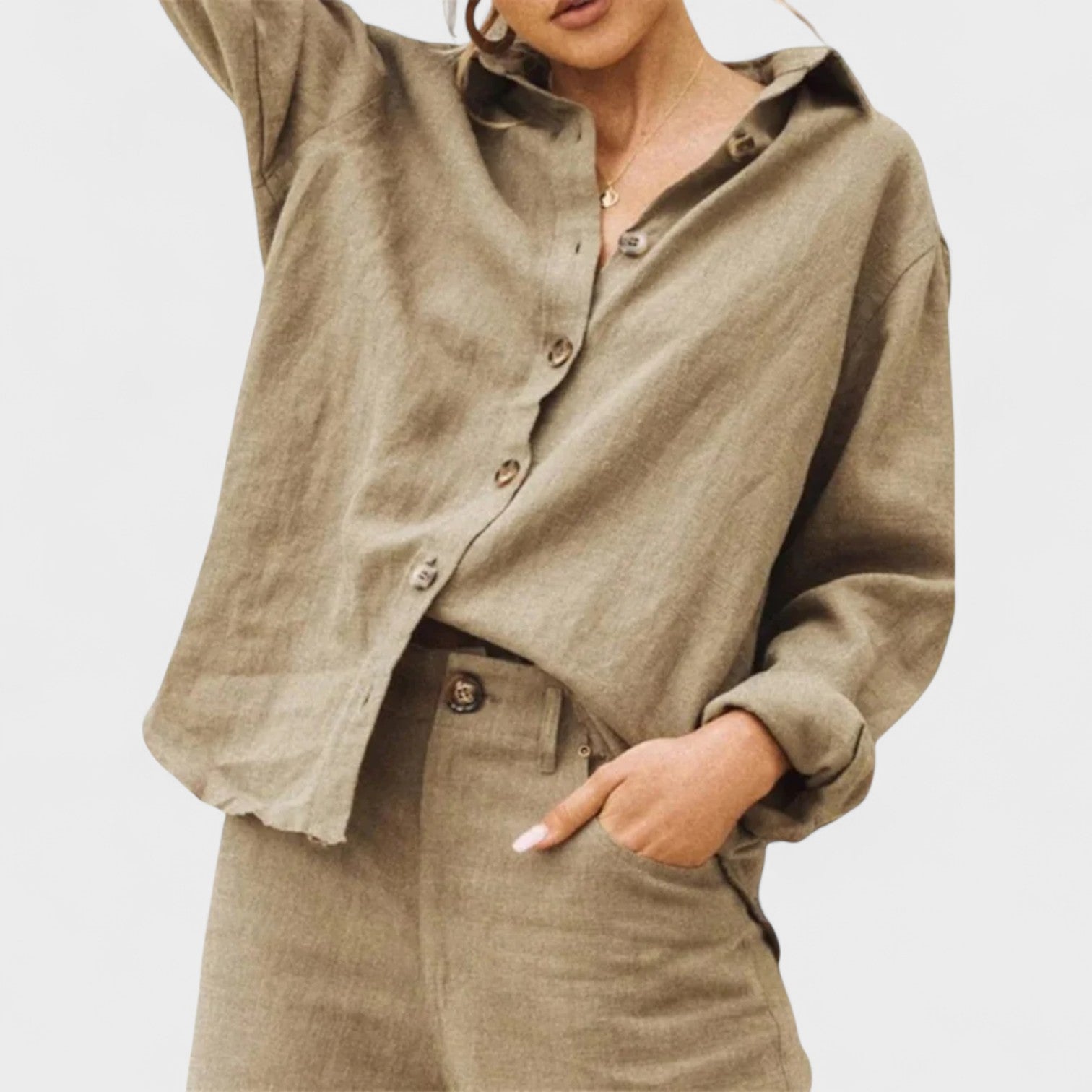 Com um caimento solto e botões frontais que adicionam charme sem esforço, esta camisa é a definição de elegância descomplicada. Feita com tecido leve e modelagem confortável, ela é perfeita para os dias quentes, seja para um look casual chic ou para produções sofisticadas e despojadas.