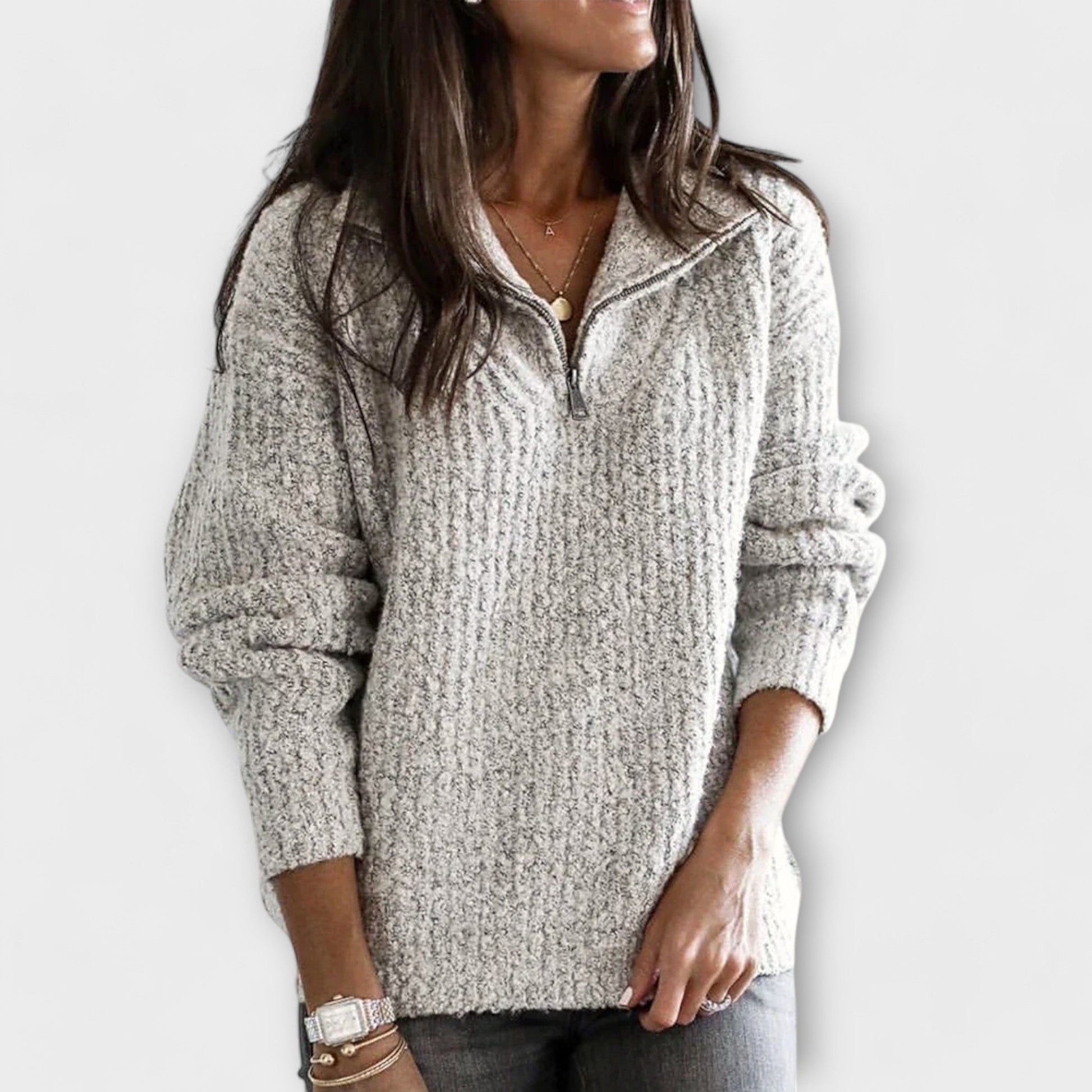Mantenha-se aquecida e confortável neste suéter de inverno de corte relaxado, com fecho de meio zíper, que dá um toque moderno e prático. As mangas longas e o material suave proporcionam calor e conforto, tornando-o perfeito para o uso diário ou aventuras ao ar livre no inverno.