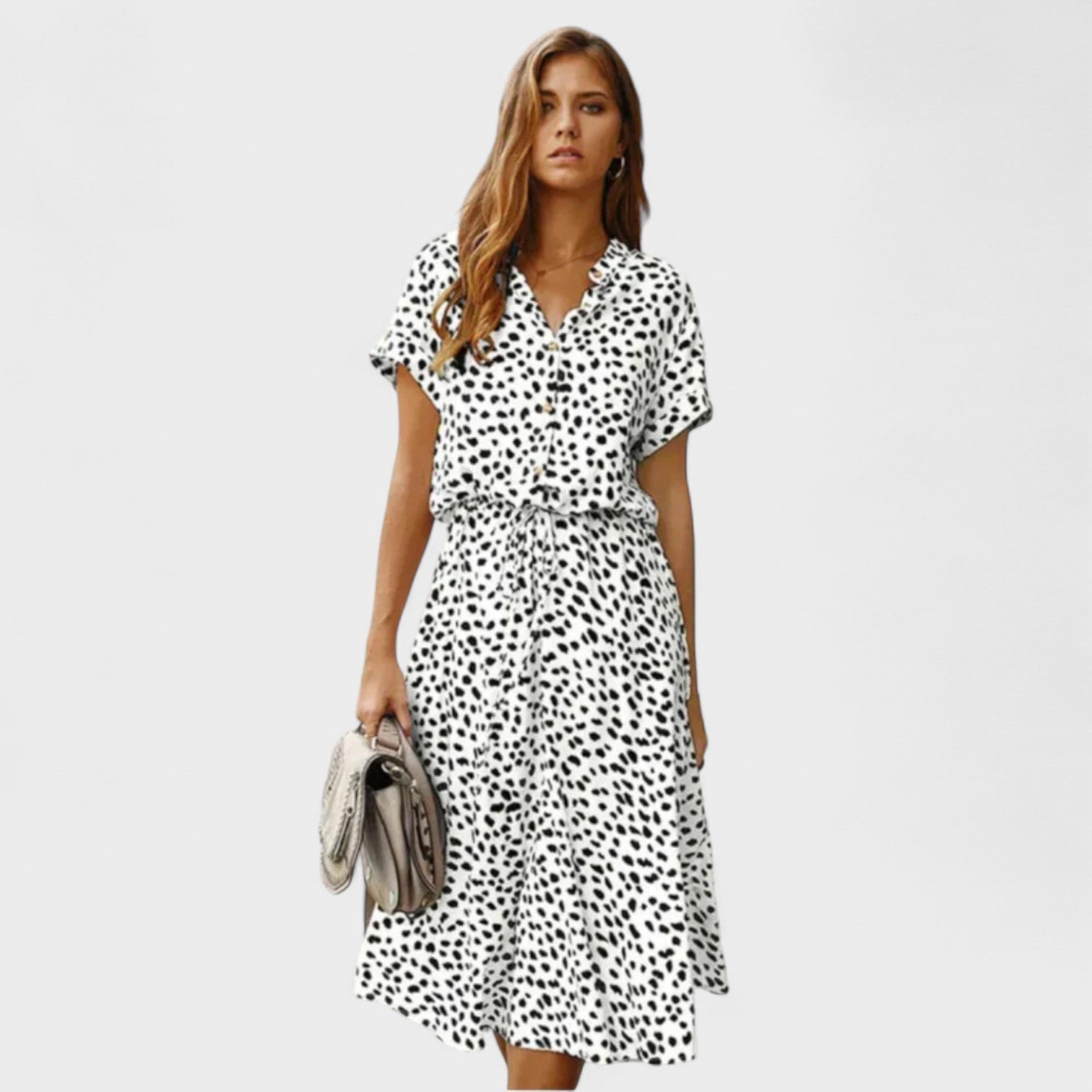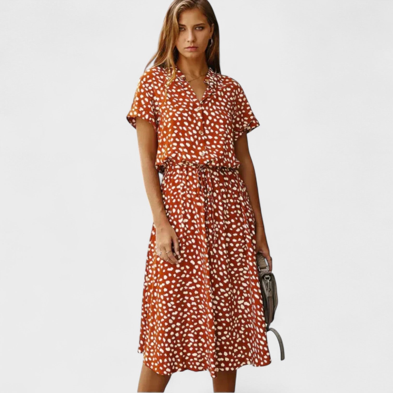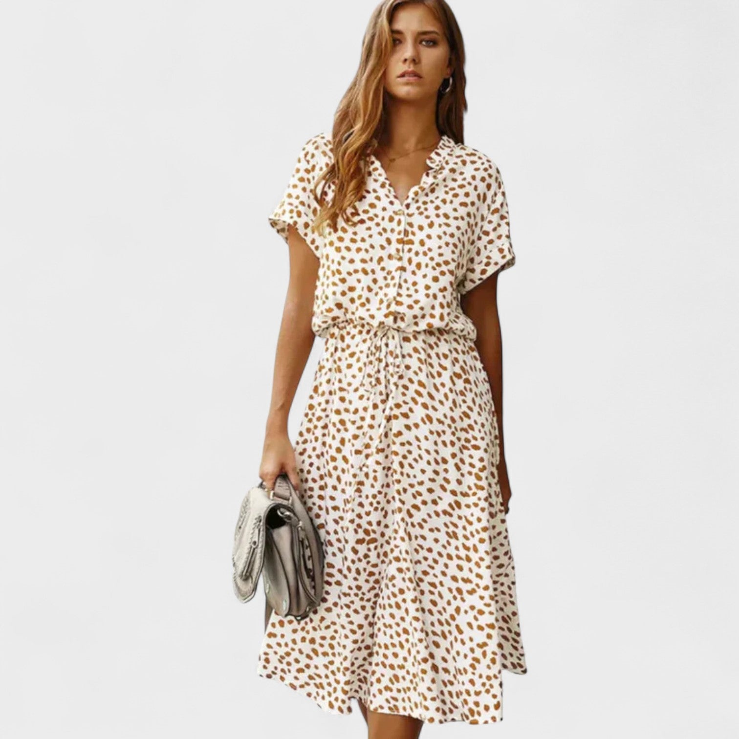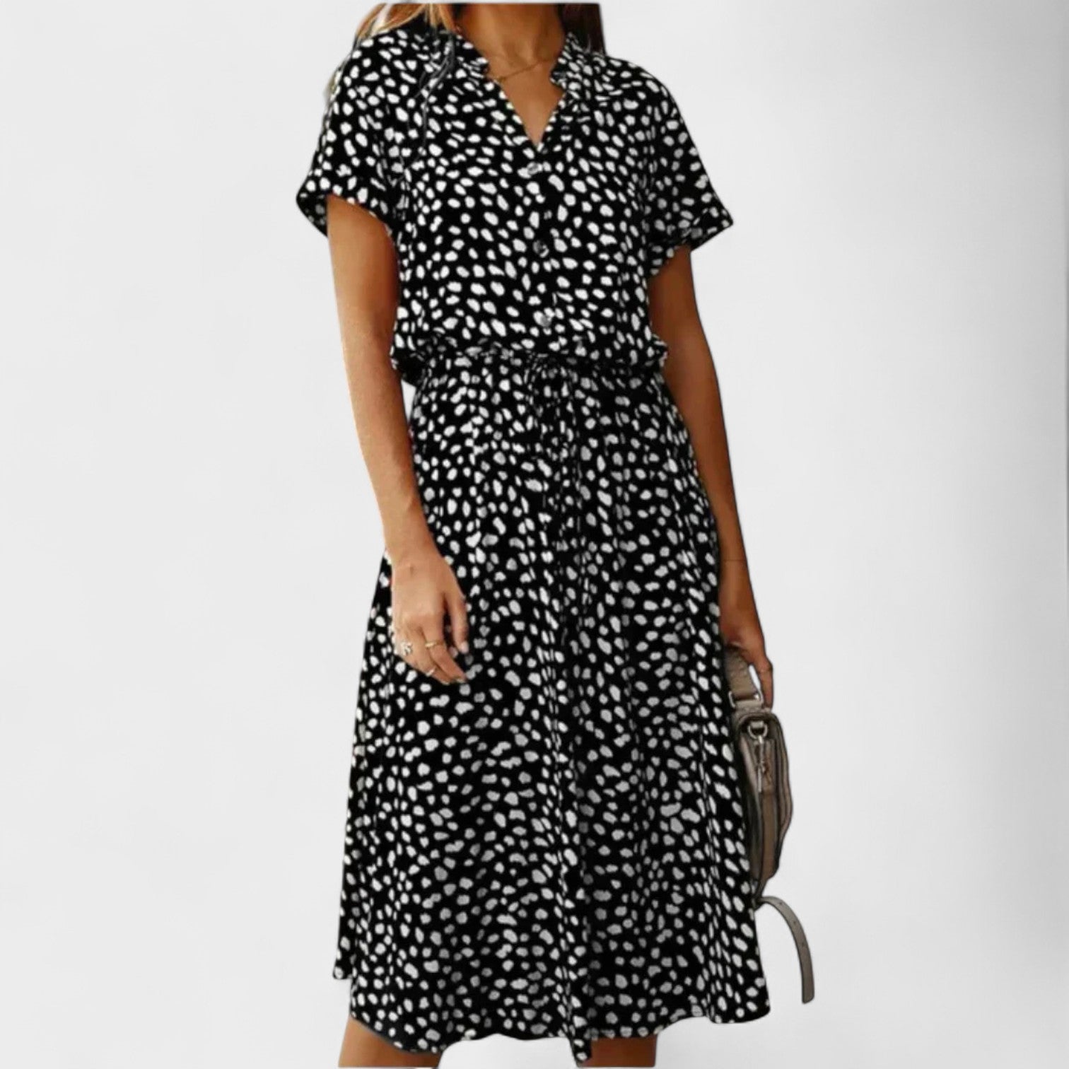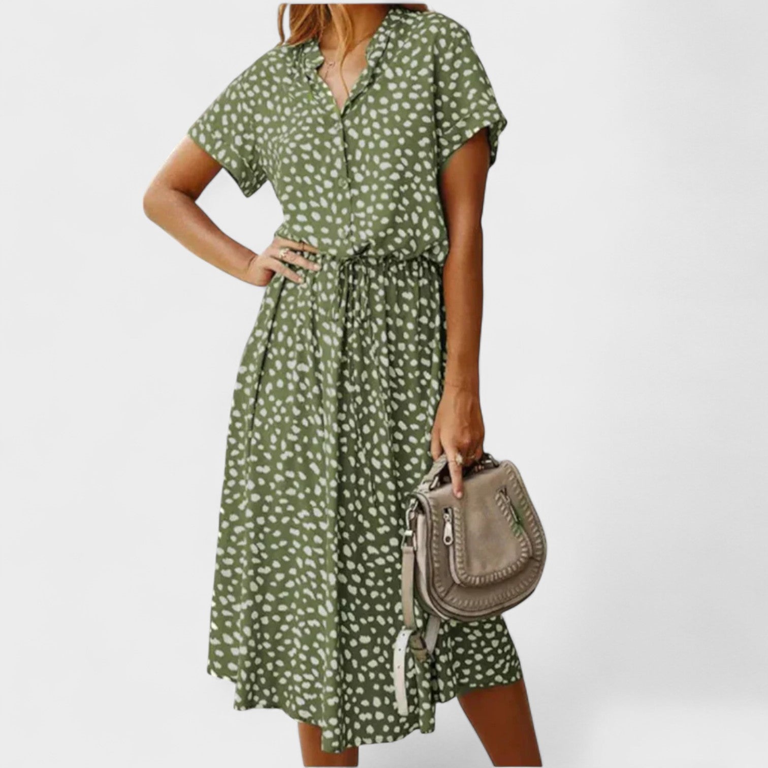 Combinando charme descontraído e frescor absoluto, este vestido é a escolha ideal para quem busca elegância sem esforço. Seu design leve com estampa moderna e amarração na cintura traz conforto e atitude, seja para um passeio de fim de semana, um brunch com amigas ou uma viagem à beira-mar. Um visual casual-chique que nunca sai de moda.