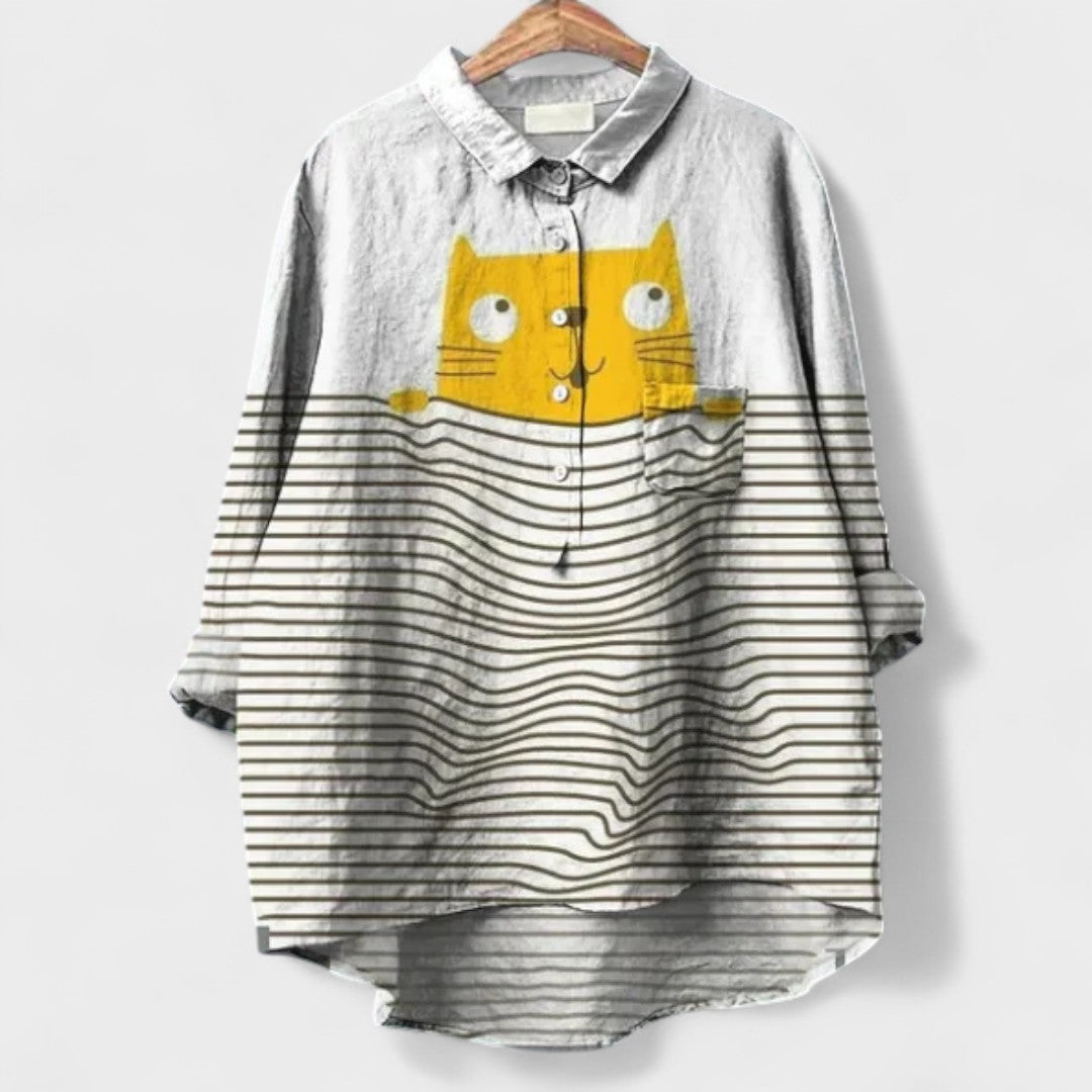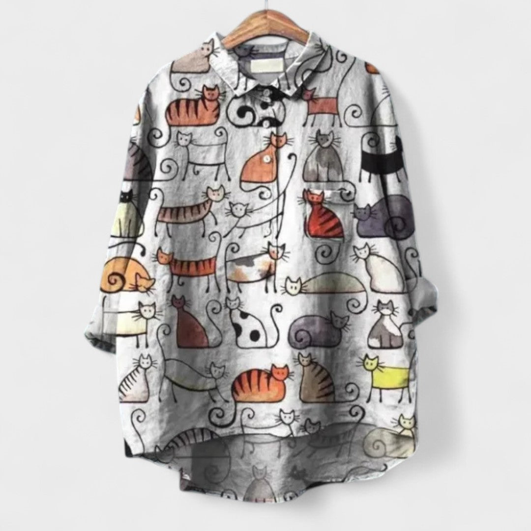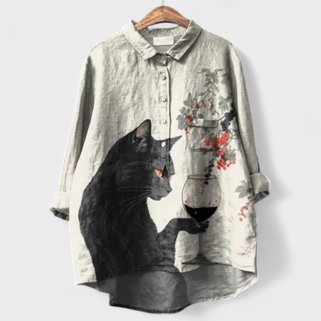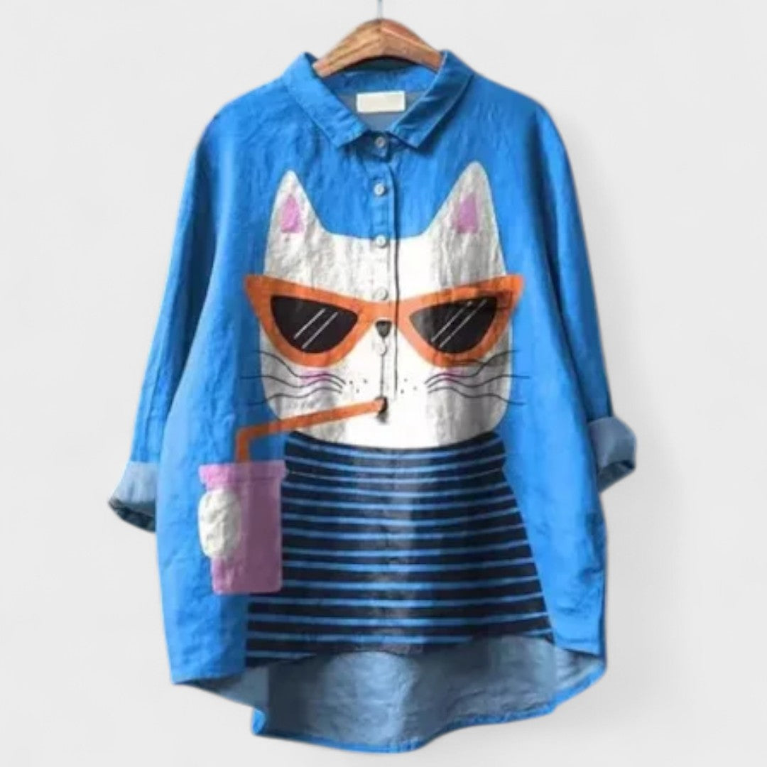 Essa camisa é perfeita para quem adora peças únicas e divertidas! Com estampa de um gatinho estiloso de óculos e bebida na mão, ela traz um toque irreverente e criativo ao visual. Ideal para composições casuais, combina com jeans, leggings ou shorts para um look leve e cheio de atitude.