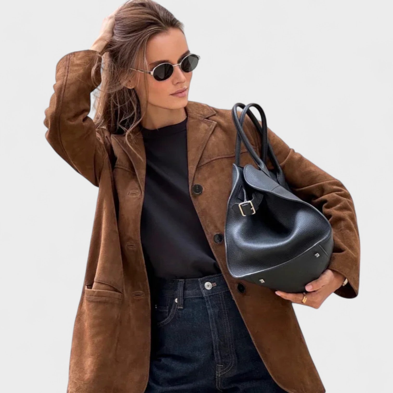 O blazer Marta combina o charme clássico do corte alfaiatado com a vibe despojada da camurça. Em um tom marrom terroso super versátil, ele traz personalidade e elegância a qualquer produção — do jeans básico à calça de alfaiataria. Estruturado na medida certa, é aquele item-chave que eleva o visual sem esforço.