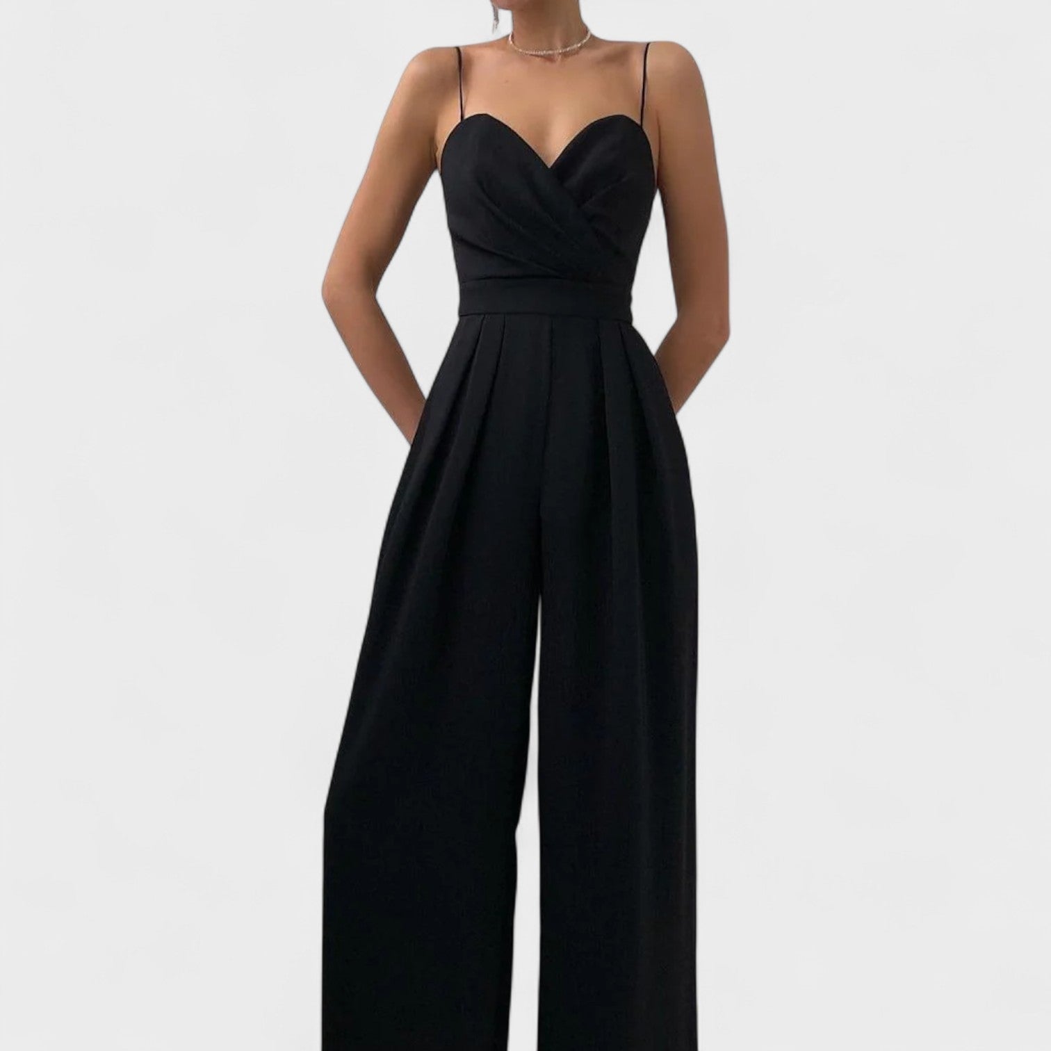 Este macacão comprido com alças finas e um decote cruzado é a escolha ideal para quem procura sofisticação com um toque moderno. Com uma cintura definida realça a figura e dá presença a qualquer ocasião - desde jantares formais a celebrações especiais. O seu design minimalista torna-o uma peça versátil, fácil de combinar com acessórios arrojados ou discretos, dependendo do seu estilo.